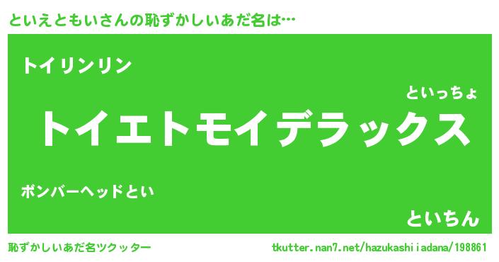 | ポケモン風あだ名 | 『トイセウス』『ヒトイエトモイ』 |
