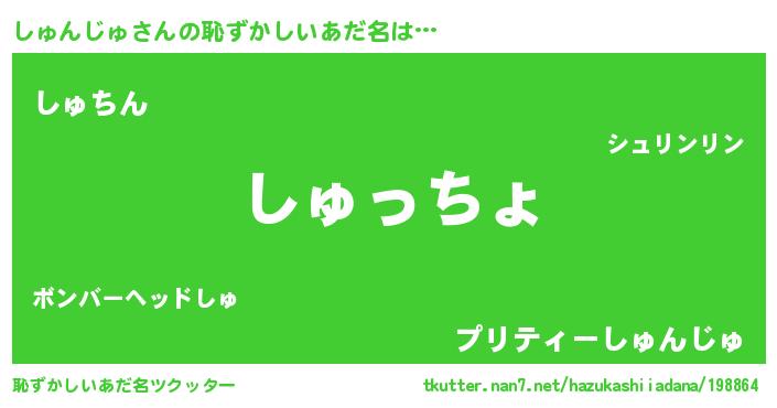 | 男性向けラノベタイトル風あだ名 | 『しゅんじゅに滅ぼされるだけの簡単なお仕事です』 |