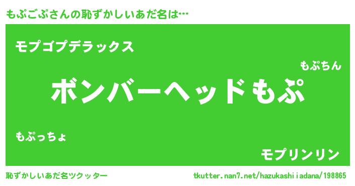 | ヒーロー風カッコイイあだ名 | 『正義の使者もぷごぷ』『魔戒騎士モプ』 |