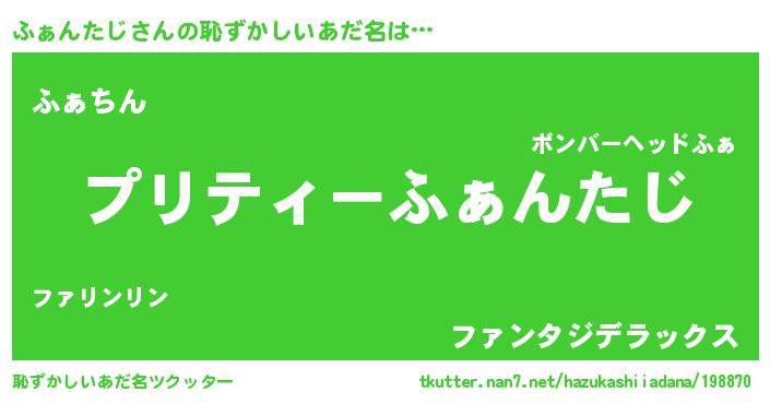 | 意味不明あだ名 | 『ペロリンふぁんたじ』『自称ふぁんたじ』 |