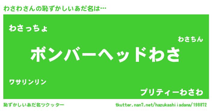 | 男性向けラノベタイトル風あだ名 | 『わさわ~年齢イコール彼女いない歴の魔法使い~』 |