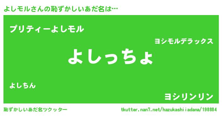 | 男性向けラノベタイトル風あだ名 | 『転生したらよしモルだった件』 |