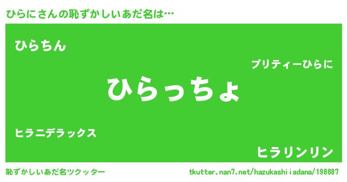 | ヘコむあだ名 | 『つくし』『ひらに(笑)』『ひらにー』 |