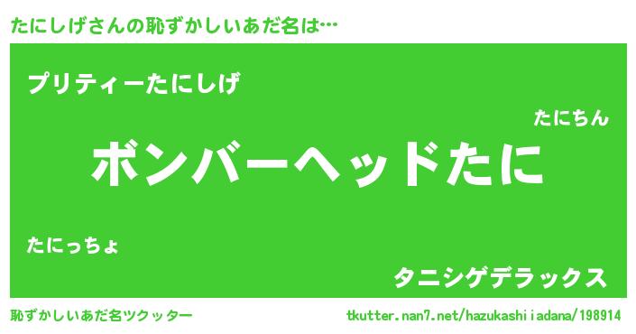 女子向けラノベタイトル風あだ名 | 『死神たにしげの再婚』『闇のたにしげ』 |