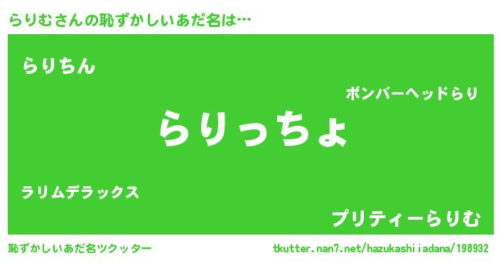 | 意味不明あだ名 | 『らりむフォーエバー』『永久保存らりむ』 |