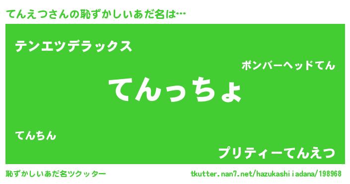 | 意味不明あだ名 | 『てんえつフォーエバー』『自称てんえつ』 |