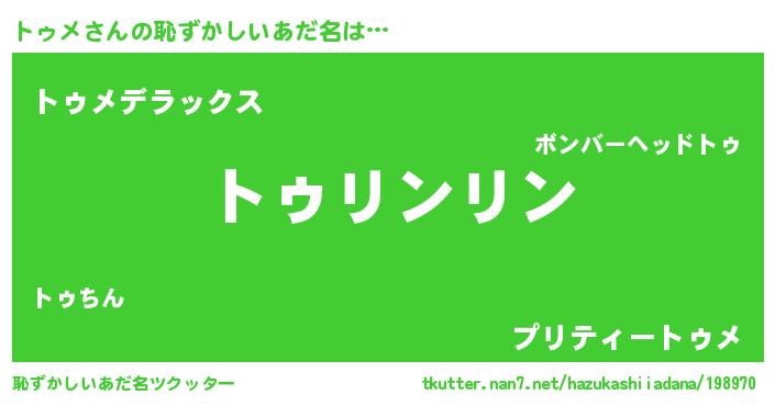 | 意味不明あだ名 | 『とにかく怪しいトゥメ』『自称トゥメ』 |