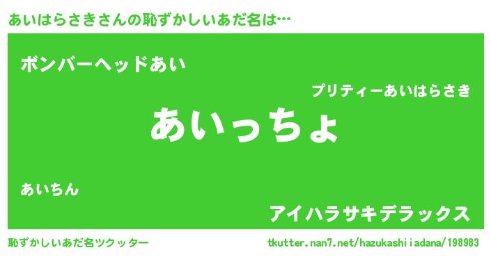 | 意味不明あだ名 | 『あいはらさきフォーエバー』 |
