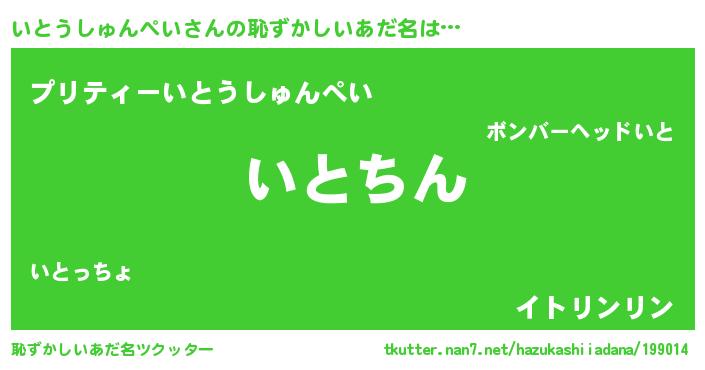 | 意味不明あだ名 | 『永久保存いとうしゅんぺい』 |