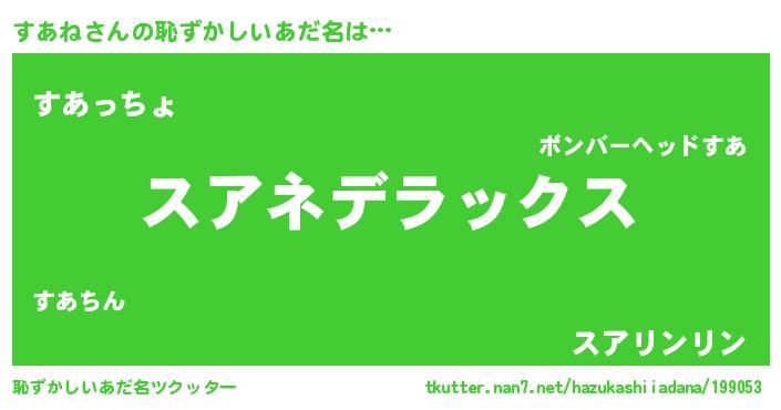 | 意味不明あだ名 | 『しいたけ科すあね属』『自称すあね』 |