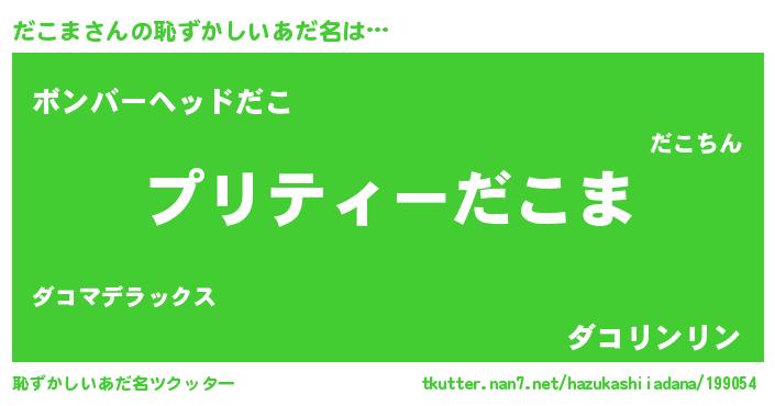 | 男性向けラノベタイトル風あだ名 | 『転生したらだこまだった件』 |