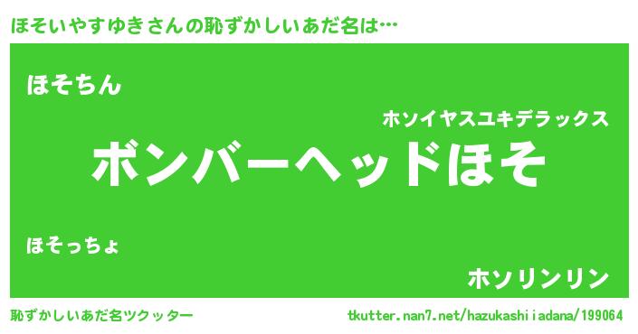 | 意味不明あだ名 | 『住所不定無職ほそいやすゆき(98歳)』 |
