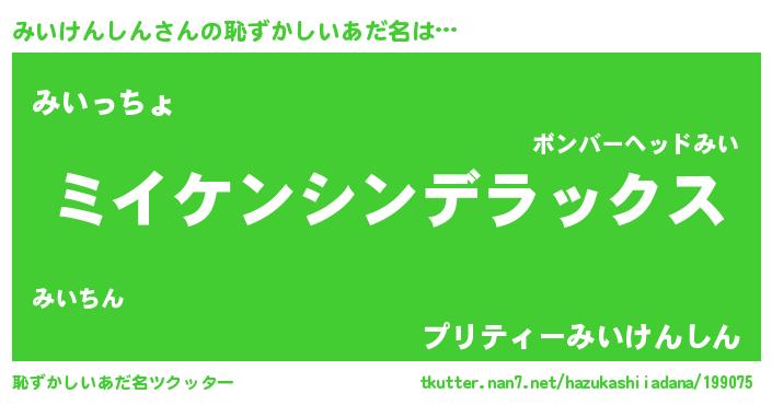 | ヒーロー風カッコイイあだ名 | 『究極戦士ミイケンシン』『仮面ミイダー』 |