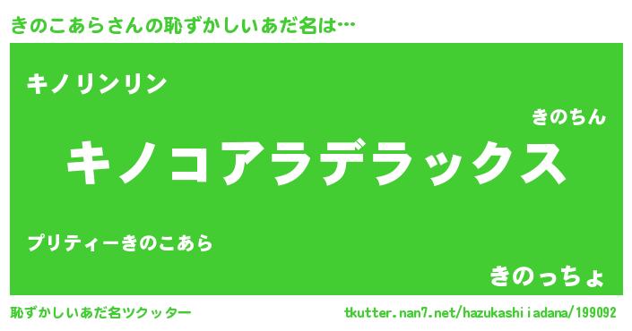 | 意味不明あだ名 | 『自称きのこあら』『永久保存きのこあら』 |