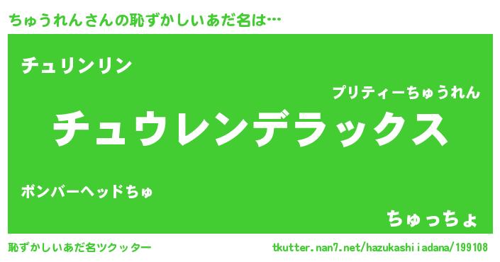 | 意味不明あだ名 | 『自称ちゅうれん』『ペロリンちゅうれん』 |