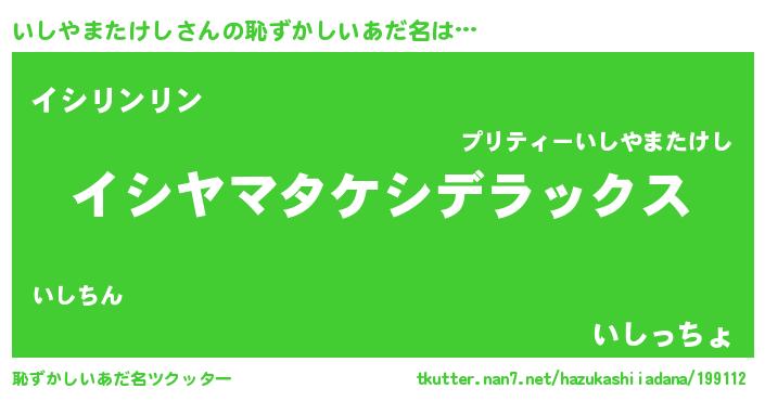 | 意味不明あだ名 | 『住所不定無職いしやまたけし(13歳)』 |