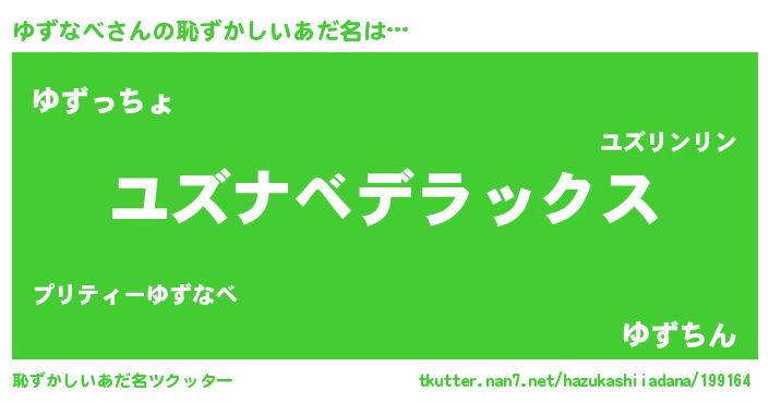 | 男性向けラノベタイトル風あだ名 | 『Re:ゆずなべから始める異世界生活』 |