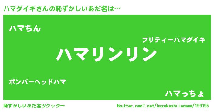 | ポケモン風あだ名 | 『ハマキング』『ヒハマダイキ』 |