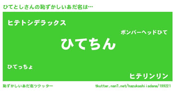 | 意味不明あだ名 | 『永久保存ひてとし』『自称ひてとし』 |