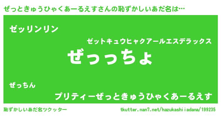 | 意味不明あだ名 | 『ぜっときゅうひゃくあーるえすフォーエバー』 |