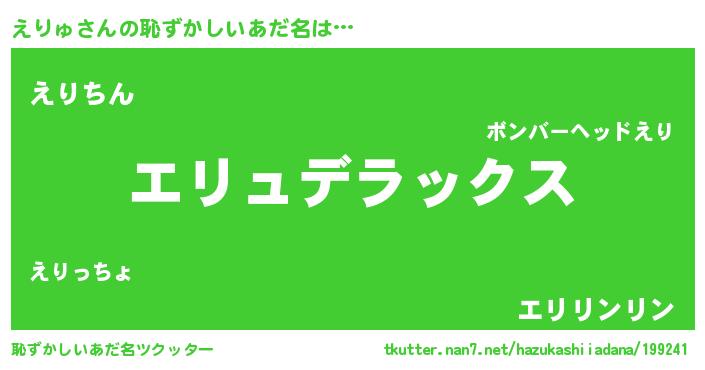 | 意味不明あだ名 | 『自称えりゅ』『たけのこ科えりゅ属』 |