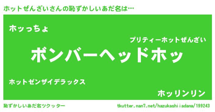 | 欧米人風あだ名 | 『ダニエルホットぜんざい』 |