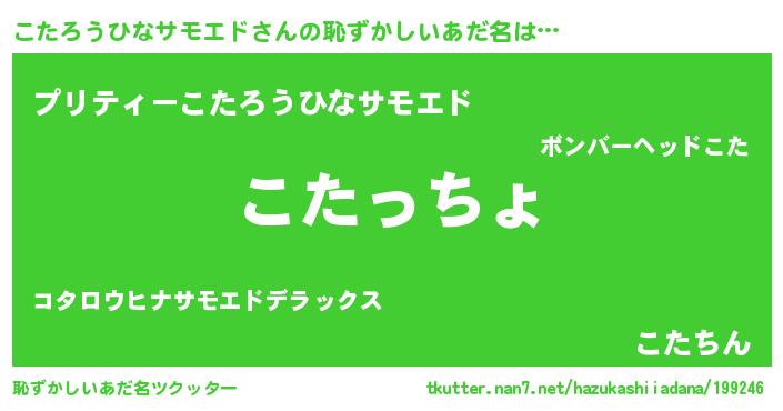 | ファンタジー風あだ名 | 『エターナルコタロウヒナサモエドー』 |