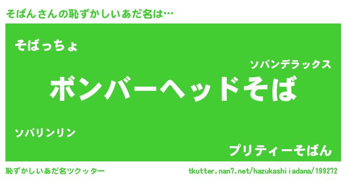 | 男性向けラノベタイトル風あだ名 | 『転生したらそばんだった件』 |