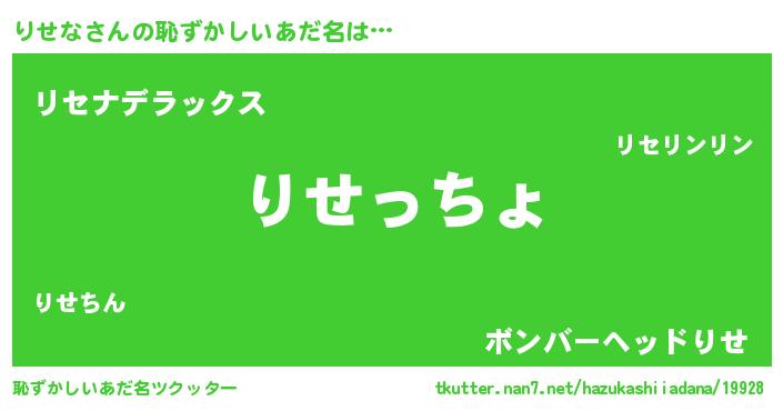 | 意味不明あだ名 | 『りせなフォーエバー』『自称りせな』 |