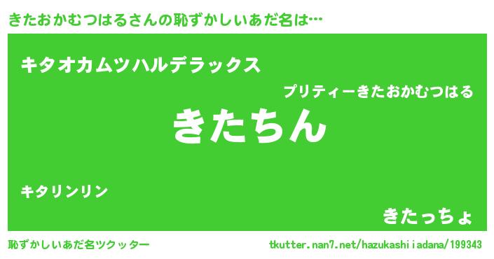 | 意味不明あだ名 | 『永久保存きたおかむつはる』 |