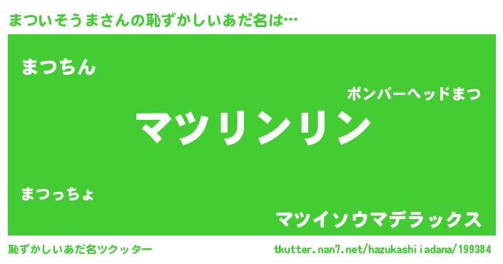| ヘコむあだ名 | 『まつっぺ』『まついそうま(小並感)』 |
