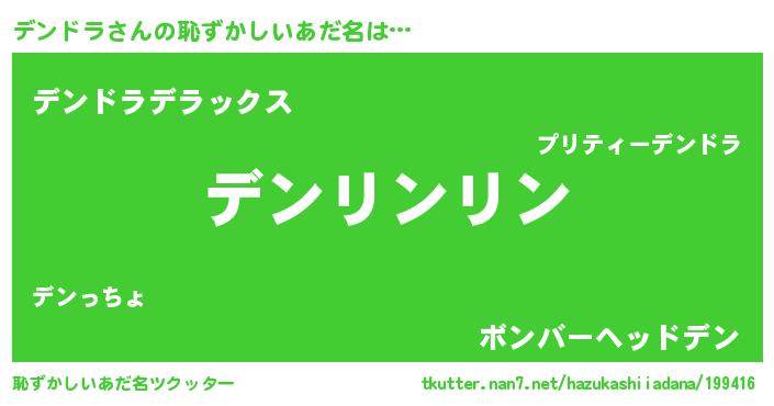 | 意味不明あだ名 | 『とにかく怪しいデンドラ』 |