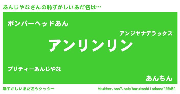 | 女子向けラノベタイトル風あだ名 | 『あんじやなは平凡を望む』 |