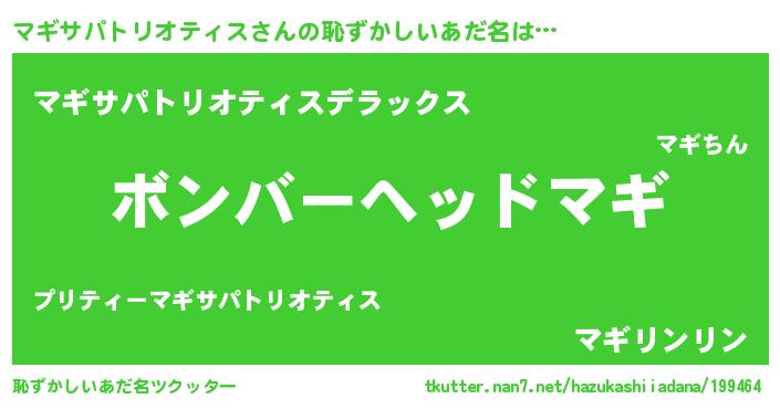 | ヘコむあだ名 | 『マギを』『マギサパトリオティス(苦笑)』 |