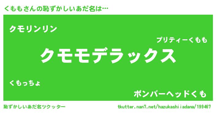 | 意味不明あだ名 | 『自称くもも』『とにかく怪しいくもも』 |