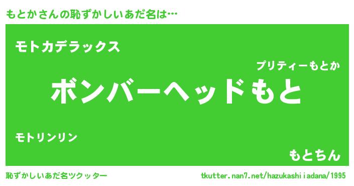 | ヒーロー風カッコイイあだ名 | 『天空の使者もとか』『究極戦士モトカ』 |