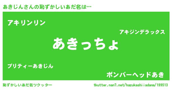 | 欧米人風あだ名 | 『あきじんクリステル』 |