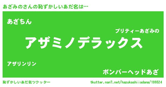 | 可愛いあだ名 | 『あざうちぇる』『あざぷりん』 |