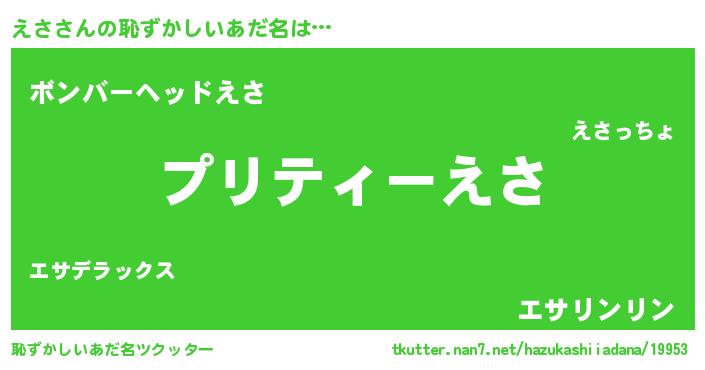| ヒーロー風カッコイイあだ名 | 『スーパーエサ』『慈愛の使者えさ』 |
