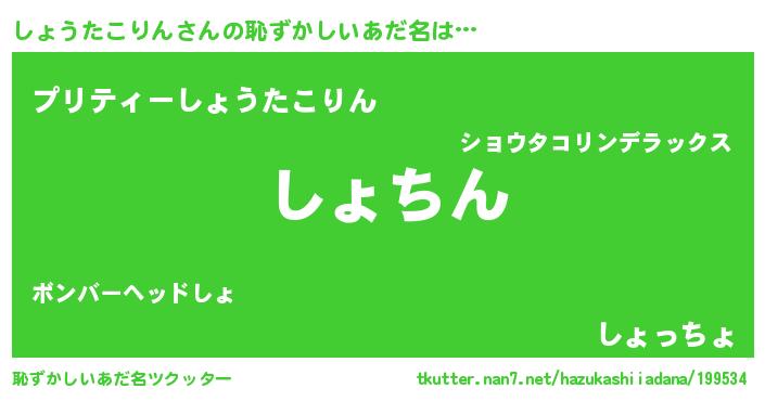 | ヘコむあだ名 | 『しょうたこりん(笑)』『しょふぇ~』 |