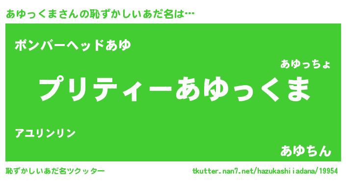 | 意味不明あだ名 | 『住所不定無職あゆっくま(98歳)』 |