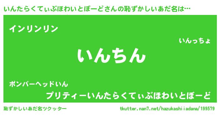 | 意味不明あだ名 | 『住所不定無職いんたらくてぃぶほわいとぼーど(9歳)』 |