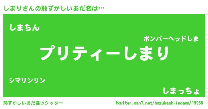 | ヘコむあだ名 | 『しまもー』『しまり(爆)』『つくし』 |