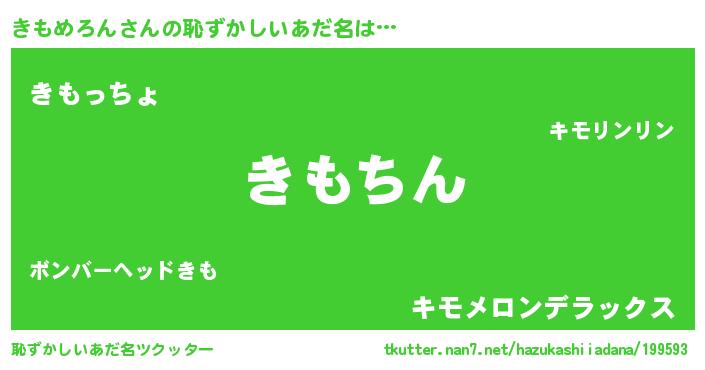| 男性向けラノベタイトル風あだ名 | 『きもめろんという概念が存在しない退屈な世界 』 |