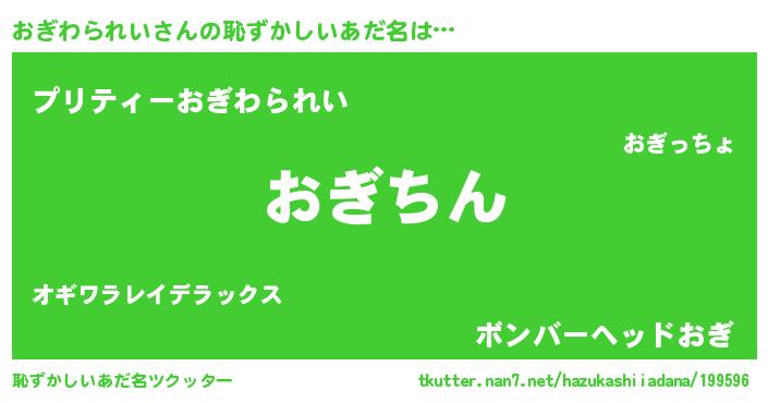 | ポケモン風あだ名 | 『オギゴンZ』『ゼニオギ』『オーギイ』 |