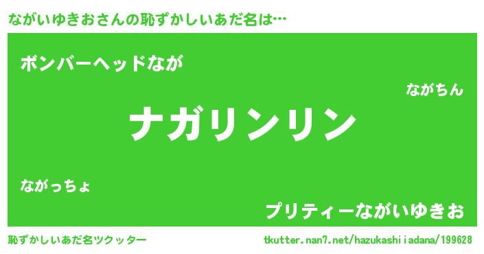 | 男性向けラノベタイトル風あだ名 | 『ながいゆきおの嫁は女の子じゃないと思った?』 |