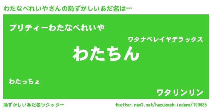 | ヘコむあだ名 | 『わたなべれいや(笑)』『わたっふぃ~』 |