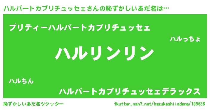 | 女子向けラノベタイトル風あだ名 | 『ハルバートカブリチュッセェは平凡を望む』 |