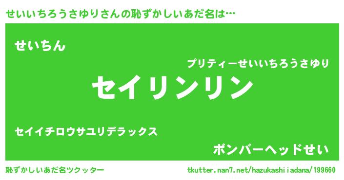 | ポケモン風あだ名 | 『セイキング』『ヒセイイチロウサユリ』 |