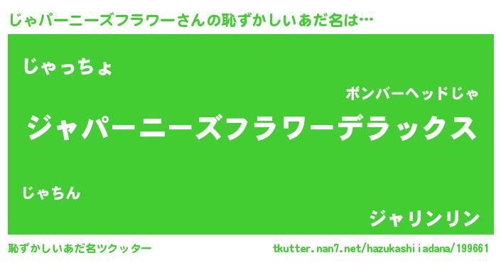 | 意味不明あだ名 | 『自称じゃパーニーズフラワー』 |